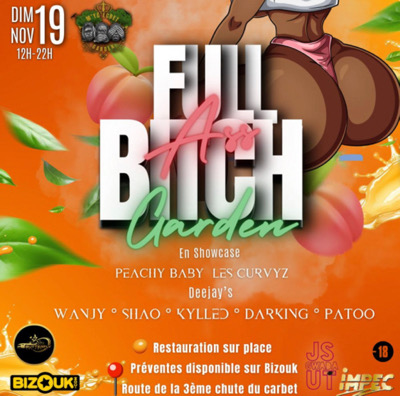BB *BOSSHATTA PRÉSENTE LA FULL ASS GARDEN AU M'Y CECRET GARDEN À ROUTHIERS CAPESTERRE BELLE EAU LE DIMANCHE 19 NOVEMBRE 2023 de 12 h à 22h Tous pour les FESSES rien que les FESSES