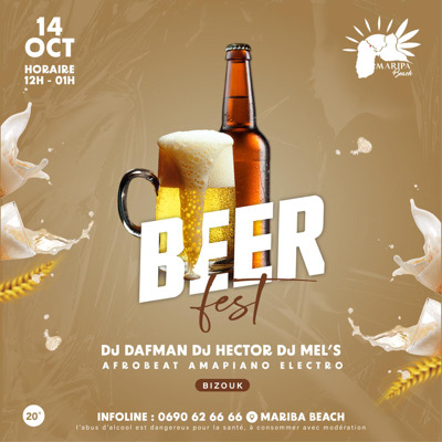 Hello 👋 Chaque année, la bière est mise à l’honneur ! 🍺 Le Maripa Beach a tout prévu pour vous le 14 Octobre 2023 🍻*LA BEER FEST*🍻