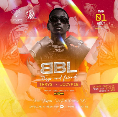 Rendez vous ce mardi 01 août au wbyciroc pour la BBL ✨ En compagnie de dj tkrys et jicypie Entrée gratuites pour les filles jusqu'à 00h💃🏼 Info resa VIP : SMS 0690 92 47 51 Événement interdit aux mineurs.