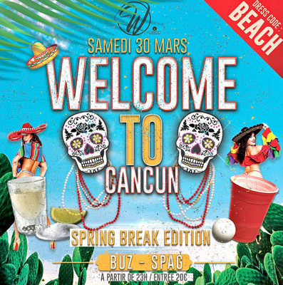 🎉Samedi 30 Mars - W CLUB😏 Welcome to Cancun 🌴🌟 Spring Break Edition à partir de 23h ! Dress code BEACH 🏝️ * la direction se réserve le droit d’entrée.