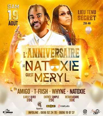🔥 *BEFORE ANNIVERSAIRE DE NATOXIE* 🔥 📆 *SAMEDI 24 JUIN* ⏰ *22H - 04H* 📍 *DOMAINE DES OASIS* Pour ce before anniversaire il a décidé de réunir tout ses amis dj & Artistes… 🎧 *LIL KILLA - T FIISH - WILL ONE - WHYNE - FITCH - WILL WIX* 🎧 🎤 *LES TKD* 🎤 🎟️ *PASS DISPONIBLE* ⤵️ *BIZOUK* ➡️ https://my.bizouk.com/le-before-anniversaire-natoxie *SPARTA* ➡️ https://spartaapp.page.link/E9uA *FUNPLASS* ➡️ https://fpl.tw/80E044B2D ⚠️ *SOIRÉE STRICTEMENT INTERDIT AUX MINEURS* ⚠️
