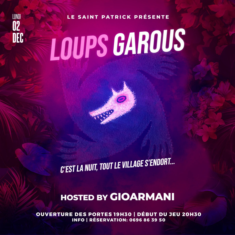 Rejoignez-nous pour une soirée captivante autour du célèbre jeu Loup-Garou ! Venez seul(e) ou avec vos amis. Que vous soyez un redoutable loup-garou, un villageois stratège, ou un voyant à l’affût des secrets, cette soirée promet suspense, rires et défis. Parties animées par Gioarmani Ouverture des portes à 19h30 Début du jeu à 20h30 St Patrick’s Bar : Cc Didier Plaza - Route de Didier - FdF Entrée gratuite Info et réservation au 0696 86 39 50