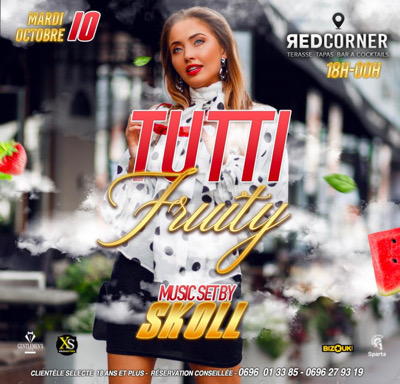 Ce MARDI dès 19h la *TEAM XS* et leurs *Hôtesses sexy* te convient au *REDCORNER* pour leur soirée TUTTI FRUITY ! *Dj SKOLL * va mettre un Maximum d'ambiance en mode Shatta ARRIVEZ TÔT . *Réserve Ton Salon dès maintenant* MANU 0696.013385 _ La direction se réserve EXCLUSIVEMENT le droit d'entrée._