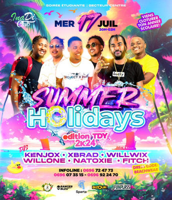 🚨*ALERTE ÉVÈNEMENT*🚨 🥳 _On avait 15-20ans, c’était l'époque de nos premières fois, les sentiments étaient démultipliés et surtout on était grave insouciants de la vie. Juste on profitait du moment présent._ 💃🏽🕺🏽 💦🌴*SUMMER HOLIDAYS💦🌴* 📍SECTEUR CENTRE ⌚️20h/2h00 🧑🎓SOIREE ÉTUDIANTE Cette fois ci on fait les choses en grand , *édition TDY2k24* donc enfile ton plus beau outfit pour une expérience unique👙🩳 Accompagnés des DJs les plus pressions de l’île 🧨🔥: 🎧*Dj Fitch* 🎧*Dj W...