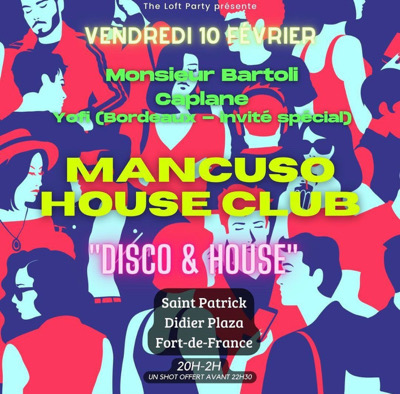 HOUSE MUSIC c'est le retour du Mancuso Beach Club au Saint Patrick🔥 DJs Caplane Monsieur Bartoli, et en invite spécial _Yofi _ (Bordeaux), pour une soirée House, Disco, Soulful et Deep. Entree gratuite. 20h-2h.🎟️ 1 Shot offert au bar avant 22:30. Venez tôt !