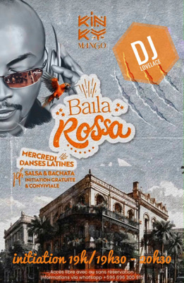 MERCREDI 07 AOÛT Le mercredi au KINKY MANGO</div></body></html>, c'est BAILA ROSSAby Mr TIMBA</div></body></html> PROGRAMME 19h/19h30 - 20h30 : Cours d'initiation avec Brice de Salsa Créole 20h30 - 0H00 : Ambiance Latine assurée par : DJ Lovelace (Guest) Tarif : Accès libre : (Consommation Recommandée) Bar Payant