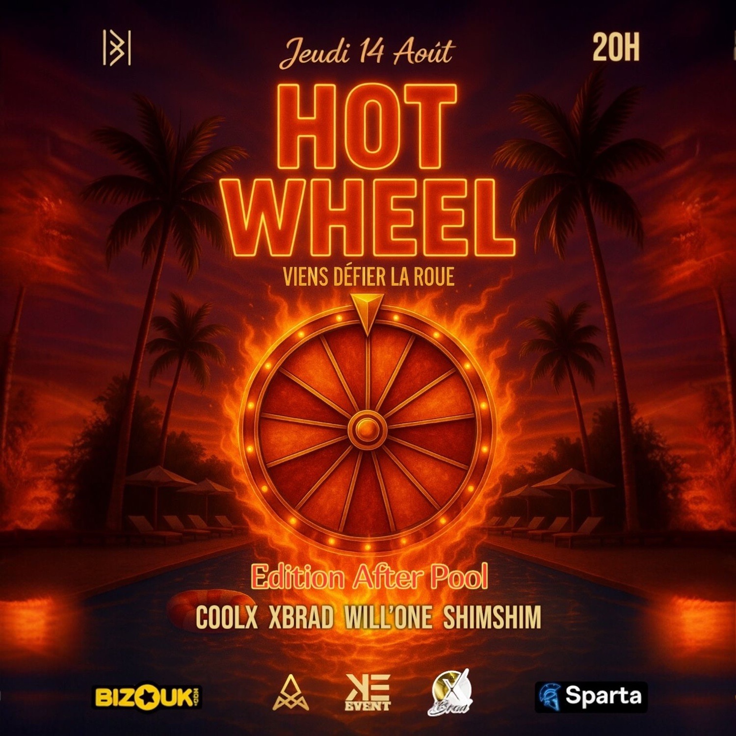 🔥🎡 HOT WHEEL – LA SOIRÉE QUI TOURNE À FOND ! 🔥🎡 Prépare-toi pour une nuit de feu 🔥 où chaque bouteille 🍾 peut faire basculer ton destin 🎯. À HOT WHEEL, chaque achat de bouteille te donne le droit de tourner la roue 🎡… et de décrocher des cadeaux exclusifs 🎁, des bouteilles gratuites 🥂, ou même des surprises inédites 🎊. 🎧 Aux platines, les experts du turn up : COOLX - XBRAD - SHIMSHIM - WILL’ONE 🎶 📍 Lieu : BLACKWOOD 📅 Date : Jeudi 14 Août 🕗 Heure : 20h – 02h Une ambiance élec...