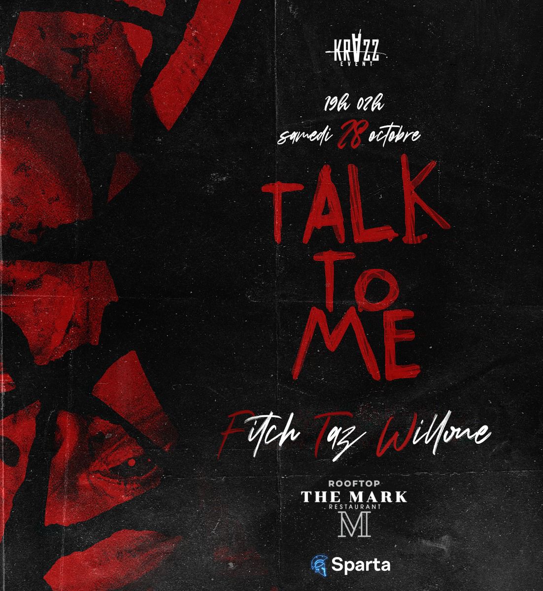 🎃👻 KRAZZ ÉVENT présente la TALK TO ME🫴🏾 la soirée d'Halloween la plus effrayante de l'année ! 👻🎃 🌕 Le 28 Octobre 2023 🏰 Lieu : THE MARK ROOF TOP ⏰ Heure : 19h00 - Jusqu'à ce que les esprits se calment 👻 Un lieu hanté par votre énergie 🧛♂️ Costume d'Halloween ou rouge et noir vous sera conseillé 🎶 Musique envoûtante de shatta par DJ Will one/ DJ Taz/ DJ Fitch Préparez-vous à frissonner, à danser et à vivre une nuit de terreur inoubliable ! Réservez vos places dès maintenant avan...