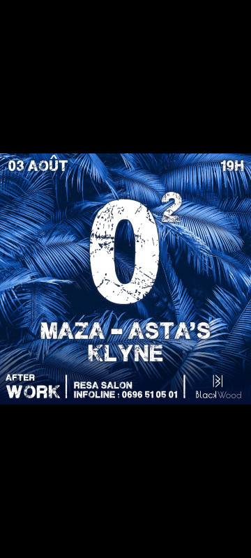 Summer Time oblige! À mi-parcours on ne lache rien! Entre festivités Nautiques démesurées appelant à la boisson et la prescription de MAZA - ASTA’S et KLYNE on devrait être immunisé pour les vacances !!! N’oublie pas ta prescription non négligeable d’OXYGEN! Blackwood A partir de 19:00 ATTENTION Tenue CORRECTE de rigueur sandale casquette sacoche jogging N’oublie pas de vite récupérer ton invitation valable jusqu'à 22h00 juste ici