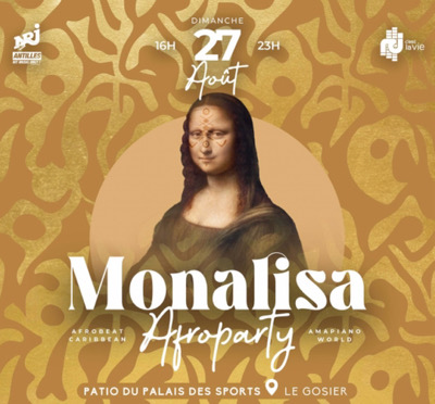 Durant les vacances, vous êtes prêt à chiller avec les meilleurs djs de l'île et d'ailleurs dans un cadre inédit ? Bienvenue à Monalisa - Afroparty C'est le meilleur de l'humeur afro-caribéenne ! Une ambiance pleine de vibes : afrobeat, SOCA - amapiano- Caribéenne et world music ! RDV tous les dimanches des vacances à la Monalisa - Afroparty de 16 à 23h au Patio du Palais des Sports du Gosier (Guadeloupe) VJ BEN - DJ DID - JADO - NINE - DAFMAN - T KRYS - GREG - SEADE - DANKERS - CHIMIK ...