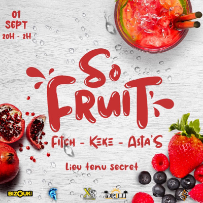 Opà!!! *_DRILL_ÉVENT & XS PRODUCTION_* vous présentent la dernière soirée des soirées vacances !! *🥝🍉 SO FRUIT 🍌🍎💦😋* Je te donne rendez-vous le *VENDREDI 01 SEPTEMBRE* pour une soirée aux fruits défendues 😈. Pour cela nous avons recruté des agriculteurs de qualité. *Nos agriculteurs👨🏾🌾:* *❇️ FITCH* le fermier *❇️ ASTA’S* le cultivateur *❇️ KÉKÉ* le jardinier _*Leur objectif :* faire pousser vos fruits jusqu’à l’extase 🫦_ *DRESS CODE :* 🟣Rose : célibataire 🎟 🔵Violet : co...