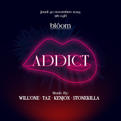 🫦Comme une soif intarissable, des envies plein la tête et des désirs à combler..🫦 🧞♀️*ADDICT*🧞♀️ 🎊*Ce Jeudi 30 Novembre*🎊 Ton lieu de rendez-vous? le Blôom (Ex Dream à la cours Perinon) de 21h à 03h. Music by : *Will’one - Taz - Kenjox - Stonekilla* ⚠️ La direction se réserve le droit d’entrée, *tenue correcte exigée* ⚠️