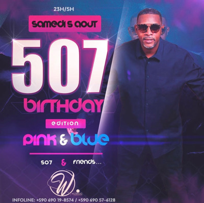 Samedi 5 août rdv au Wclub pour l'anniversaire du phénomène DJ 507 édition pink & blue ! L'ambiance sera assurée par di 507 lui mm et ces amis! Rdv à 23h en bleu et rose pour foutre le feu au Wclub !🔥