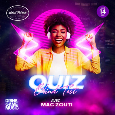 QUIZ / Blind Test* le Bar Saint Patrick vous donne rendez-vous pour un afterwork rempli de défis et de rires ce mardi 14 Mai de 19h à minuit. Rassemblez vos amis, formez vos équipes et soyez prêt à tester vos connaissances dans une ambiance conviviale. Préparez-vous à rire aux éclats avec notre invité et animateur du jour, MacZouti. St Patrick’s Bar : Cc Didier Plaza - Route de Didier - FdF Entrée gratuite