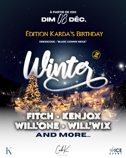 BIENVENUE DANS LE MONDE DE WINTER Le 8 décembre, plongez dans un univers où le froid réchauffe les cœurs et les corps. Les DJ seront là pour mettre le feu et faire fondre la glace, transformant la piste en un tourbillon d’énergie. Préparez-vous à danser jusqu’à ce que l’hiver devienne une légende. DRESS CODE : Blanc & Glacial – Soyez l’incarnation de l’élégance hivernale. Le 8 decembre l’hiver se réinvente. Entrez dans l’histoire de WINTER.