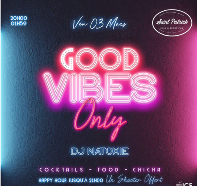 Le temps d'une pause autour d'un verre et d'une bonne chicha Ce Ven 03 Mars, GOOD VIBES ONLY Chill Afterwork By Dj Natoxie