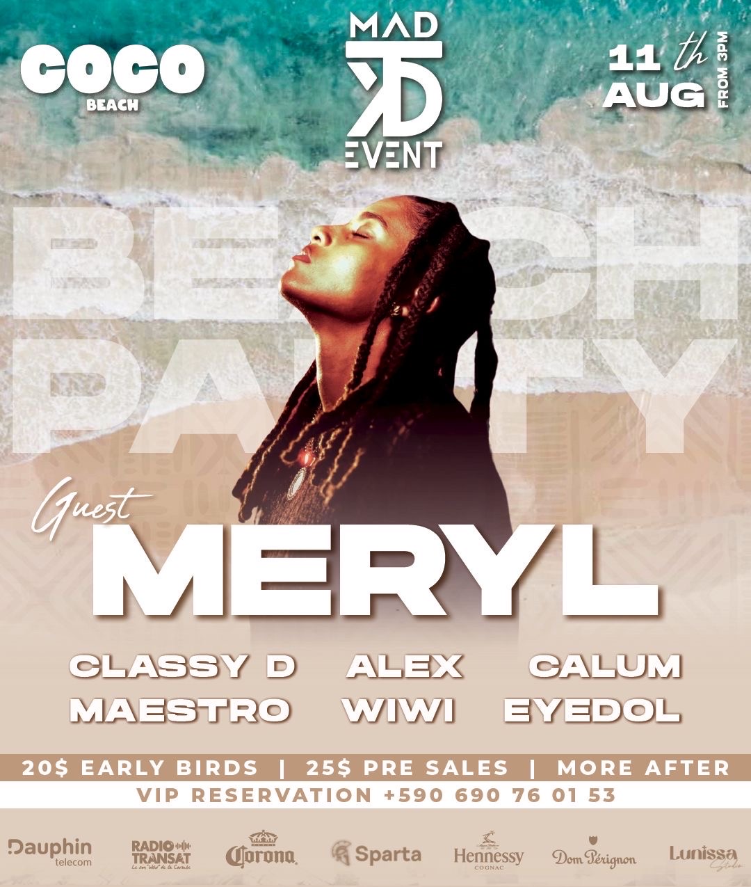 ✨MERYL LIVE AU COCO BEACH ✨ 📍 Le dimanche 11 août, MAD EVENTS revient au Coco Beach pour sa plus grande Beach party de l’été au côté de l’icône féminine des Caraïbes, MERYL pour un live show exceptionnel 🕓 Début à 15H ! @cocobeachsxm @MERYL ✨ Nommée aux Victoires de la Musique 2024 en tant que Révélation de l'Année, MERYL est en plein buzz avec la sortie de son nouvel album et sa prochaine tournée. Elle vient nous présenter en exclusivité et pour la première fois sur Sxm ses derniers hits e...