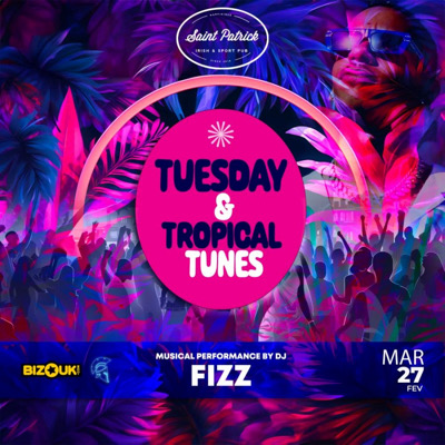Plongez dans une ambiance tropicale les mardis au Saint-Patrick ! Rejoignez-nous pour la Tuesday and Tropical Tune, où les cocktails exotiques, les rythmes de DJ FIZZ et les vibes tropicales vous transporteront loin de la routine quotidienne ! De quoi bien démarrer la semaine !! Saint Patrick : Centre commercial Didier Plaza . FDF / 0696194006 #TuesdayAndTropicalTune #SaintPatrickBar #VibesTropicales