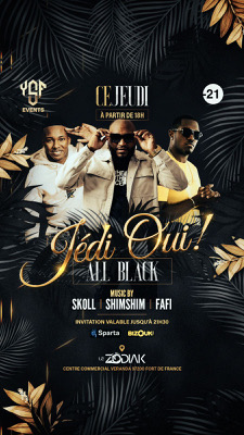Le non n’existe pas chez nous… Jédi oui!!! Le dress code ?? ALL BLACK… Si tu es all black, tu ne payes pas ! C’est notre devise. Chaque jeudi à partir de 18 heures, nous ouvrons nos portes pour un événement inoubliable. Situé dans notre tout nouveau lieu, centre commercial la véranda à Cluny , le Zodiak vous promet des soirées mémorables et une ambiance incroyable. Notre équipe talentueuse de DJ's SHIMSHIM SKOLL et FAFI vous fera vibrer aux rythmes des derniers hits, ...