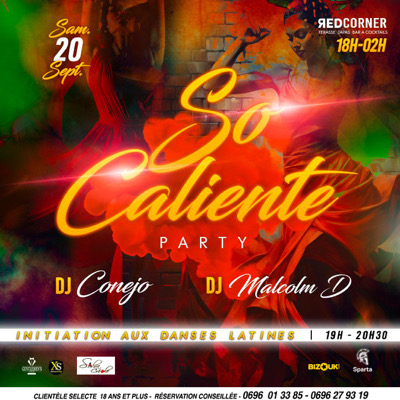 _💃🏾 Événement à ne pas manquer 🎊🎉_ La soirée *🔥So Calienté party 😍🥵* débarque au *📍REDCORNER* ce *_📆SAMEDI 23 SEPTEMBRE_* dès 18h. Nos *Djs CONEJO & MALCOM D* vont vous ambiancer jusqu'à 2h du Matin avec _🎼 Le meilleur de la 💃🏾SALSA, ZOUK, KONPA, RAGGAE, DANCEHALL, etc 🥳_ ```VENEZ nombreux danser et vous Ambiancer avec NOUS.``` Au programme : *🥰 INITIATION GRATUITE* à la *SALSA* par *_SALSA CRÉOLE_* de 19h à 20h30 💃🏾🕺🏾 *PRATIQUE* Salsa, Merengue, Bachata jusqu'à 23h *Am...