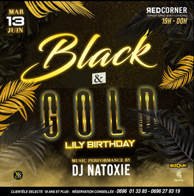 *📅 Ce MARDI 13 JUIN* dès 19h la *TEAM XS*, et *se Hôtesses sexy* te convient au *📍REDCORNER* pour leur soirée. *🖤💛BLACK & _Gold_ 💛🖤* _Spécial Lily Birthday_ *👑 Dj NATOXIE* Pour un Maximum d'ambiance en mode Shatta 😎! *_⚠️ Partagez au Max et Arrivez TÔT_* pour profiter un Max. *Réserve Ton Salon dès maintenant* 💫MANU (Whatsapp) 0696.013385 ⚡️0696.279319 _⚠️ La direction se réserve EXCLUSIVEMENT le droit d'entrée._