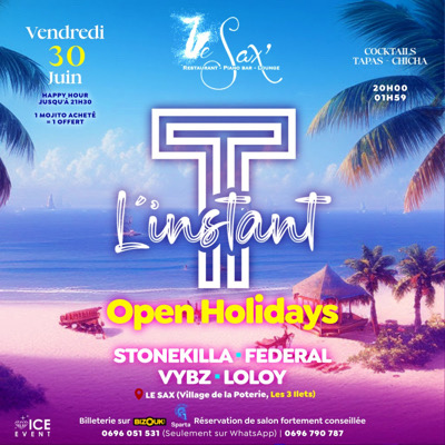 Rejoins le cercle de L'instant T... OPEN HOLIDAYS La crème de la crème STONEKILLA x FEDERAL VYBZ x LOLOY Clientèle multigénérationelle Happy Hour jusqu'à 21h30