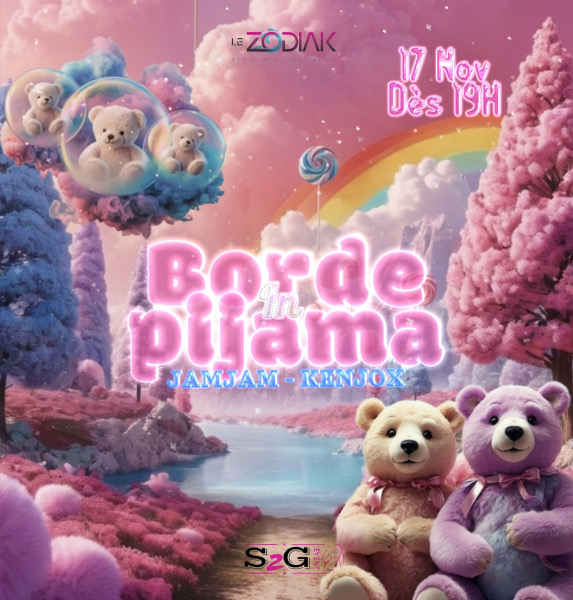 Prêts pour une soirée pyjama pas comme les autres ?! Prépare-toi pour une nuit de bordel, direction **Borde in Pijama** au **ZODIAK** ! viens profiter du confort de ton plus beau pyjama pour une expérience unique ! Date : 17 novembre Heure : 19h Lieu : Le ZODIAK Aux platines : JamJam et Kenjox Dress code : mets ton pyjama le plus sexy Réserve vite ta place sur bizouk ! #BordeInPijama #LeZodiak #SoiréePyjama