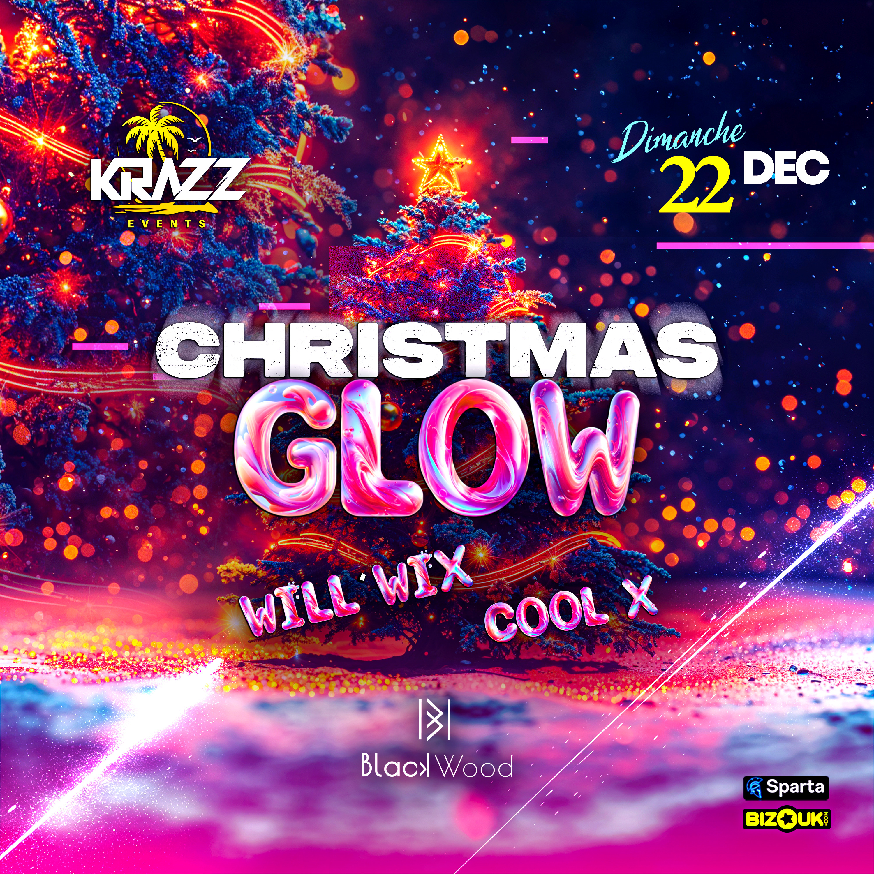 🎄✨ Christmas Glow ✨🎄 📅 22 décembre 📍 Black Wood 💡 La soirée lumineuse pour briller sous les fêtes de fin d’année ! 🎅 WILL WIX 🎅 COOL’ X pour une ambiance explosive. 💡 Glow Edition : Dress code blanc ou néon pour scintiller sous les UV. 🎁Ne manquez pas cet événement incontournable !
