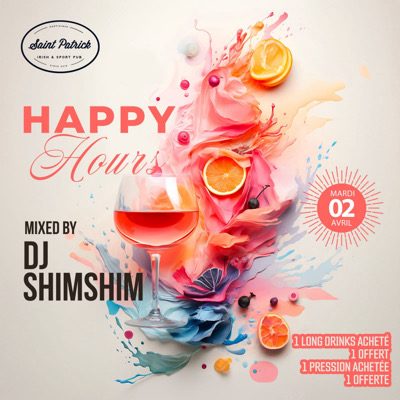 SAINT PATRICK Irish & Sport pub - HAPPY HOURS - Ce Mardi 2 avril ! - 1 LONG DRINKS ACHETÉ / 1 OFFERT - 1 PRESSION ACHETÉE / 1 OFFERTE Et cela Toute la soirée Avec pour bien démarrer la semaine DJ SHIMSHIM pour un set épicé !!! Ouvert dès 18 h 00 .