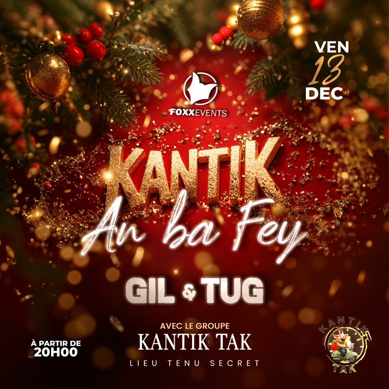 I pati manmay la !! An nou chanté nwel epi "KANTIK TAK" On se retrouve le vendredi 13 Décembre pour notre dernier Rendez-vous de l'année !! Ouverture des Portes : 20h Début du chanté Noël 21h00 Ensuite le Feu avec les boss de l'ambiance Gil & Tug Attention c'est Noël avant l'heure, quelques invitations sur Bizouk pour les plus Rapides !!!! Pa oublié kantik zot , Dans la Joie et la bonne humeur