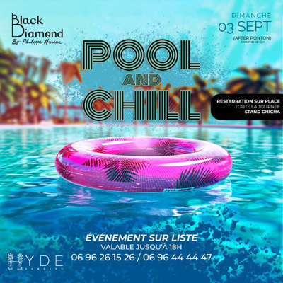 🔥_Hellooo la Team,🎉, On se retrouve ce _*Dimanche 3 Septembre_* Veille de de la rentrée, au _Black Diamond_ pour La « Pool & Chill » by Hyde Concept. 💦Les horaires: de 14h à 21h💦 🎧Pour l’occasion on t’a choisi une petite équipe de Deejays sympathiques pour que la fête soit plus folle : 🎉_*Angela x Killerz x Kopp x Asta’s*_🎉 🤤Possibilité de déjeuner sur place ( réserve ta table ici), ⚠️ _Liste valable_ jusqu’à 18h00, après 20€ sur place Ou sinon récupère ton pass sur Bizouk ou S...