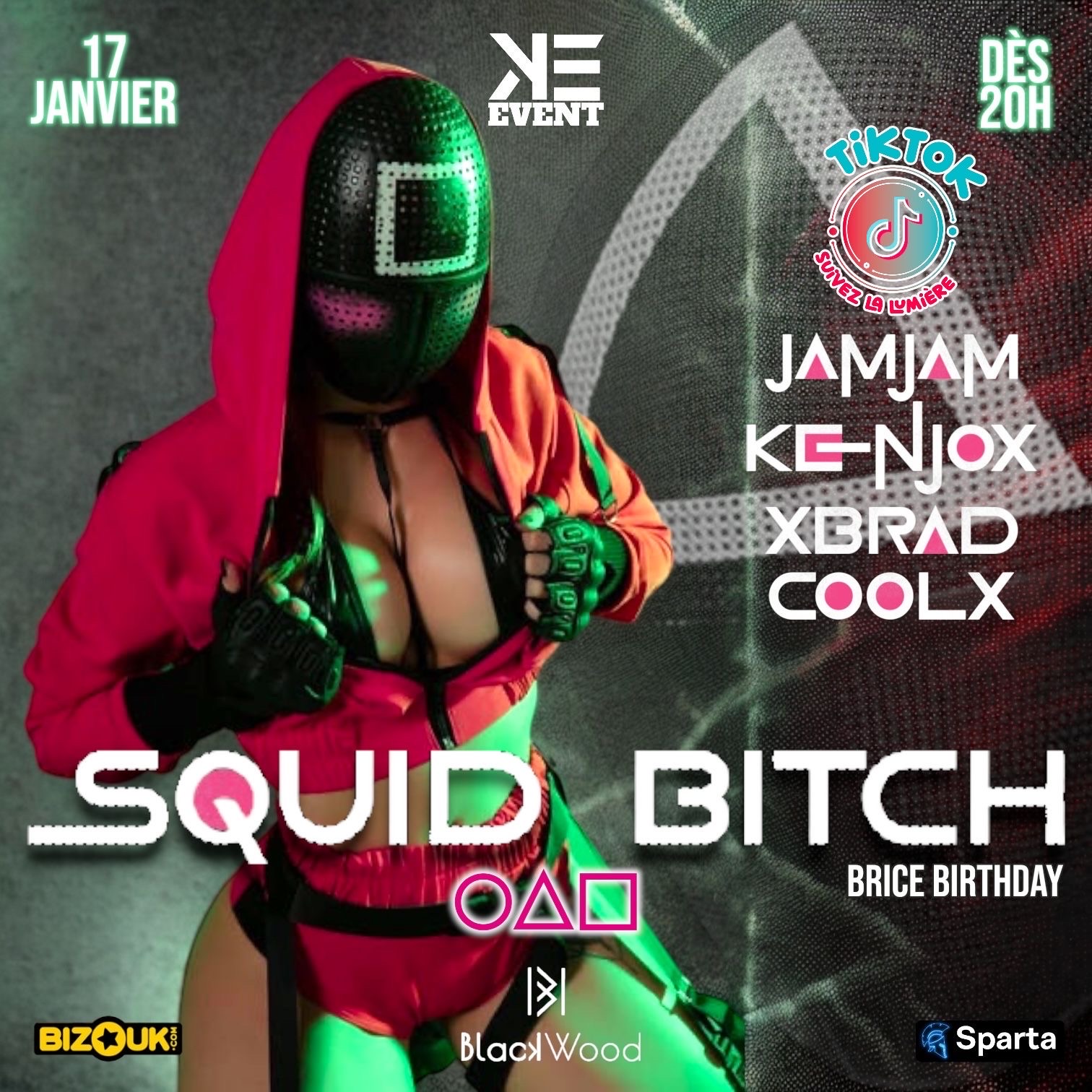 Get Ready for the SQUID BITCH “BRICE BIRTHDAY” DRESS CODE : CARNAVAL Le Carnaval 2025 est lancé alors le 17 Janvier on lâche les dogs en mode Squid Game avec aux platines: JAMJAM KENJOX XBRAD COOLX Evenement interdit aux mineurs