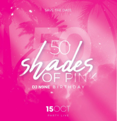 Fifty Shades of Pink - DJ N9NE Birthday Si certains mettent des paillettes dans ta vie, Dj N9NE te fait voir la vie en rose pour son birthday ! Le 15 octobre 2023 prépare-toi à passer le moment le plus Sweet de ta vie en compagnie de tes DJ’s préférés : Jado, Dafman, Daboyz, Krafty, Chimik, Kylled, Tikito, Cloco, Styll One, Siw'Roo, 507. Un showcase surprise inoubliable t'attend ! Stay connected, laisse-toi embarquer dans ce rêve rose pour un voyage riche en émotions. On compte sur...