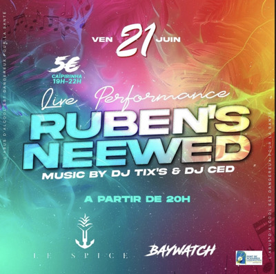de la Musique au Baywatch ! Venez célébrer la Fête de la musique ! Rejoignez-nous dès 20h pour une soirée inoubliable avec RUBEN'S et NEEWED et DJ Tix's ET CED aux platines!! Profitez de nos délicieuses caïpirinhas à seulement 5€ de 19h à 22h. A très vite • Port de plaisance de l'Etang Zabricot, Fort-de-France 97200, Martinique. 0696 30 77 40 L'abus d'alcool est dangereux pour la santé, à consommer avec modération.