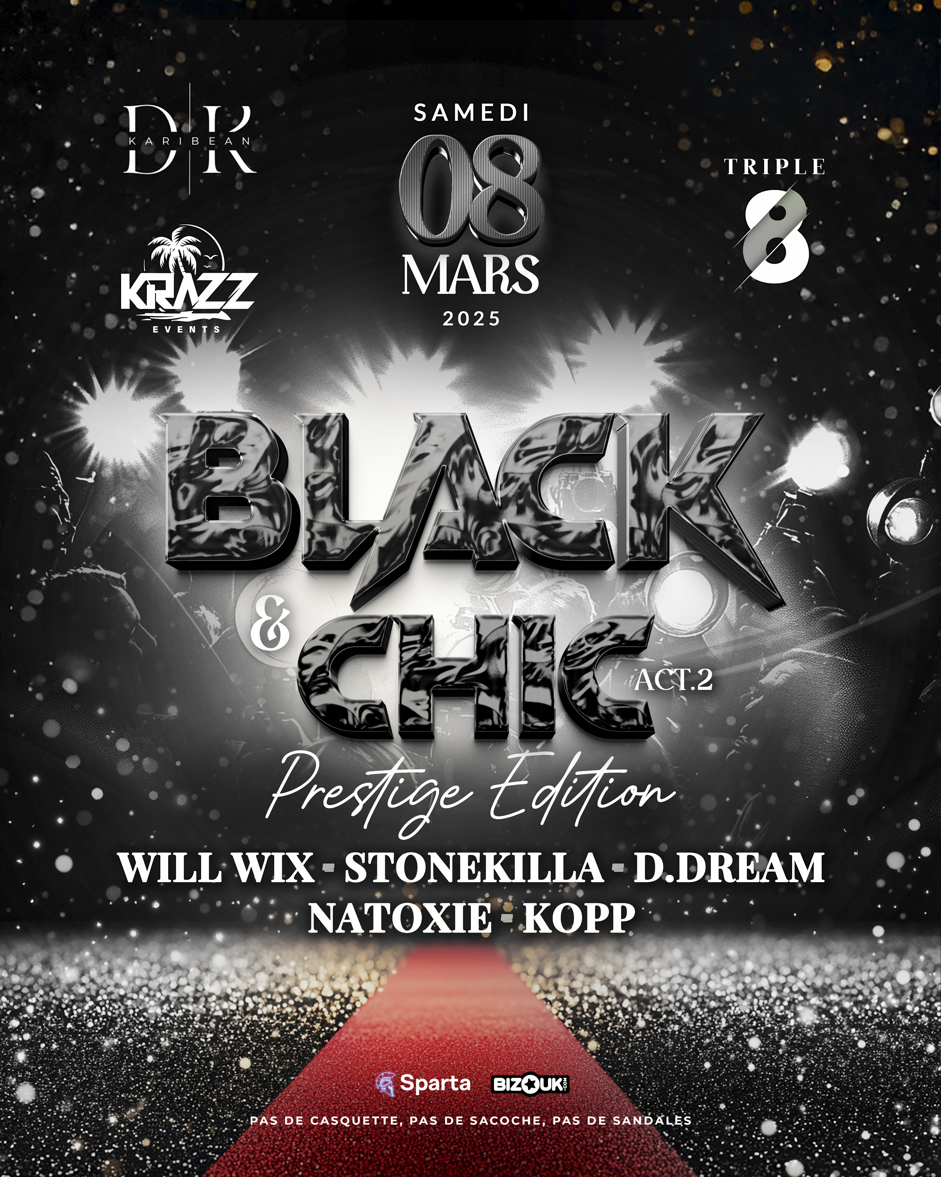 Karibean Boys & Girls 🌴 Visiblement cet évènement vous a marqué car vous nous l’avez réclamé & comme on dit : Chose promise, chose due ! Karibean DK & Krazz Event vous convie à l’acte 2 de la « Black & Chic - Édition Prestige » ✨ Ce sera l’occasion parfaite pour vous de vous mettre sur votre 31 après cette période carnavalesque & de profiter d'une ambiance hors du commun avec un plateau deejays multigénérationnel 🥳 Le Samedi 8 Mars, munissez vous de vos meilleurs outfits FULL BLACK 🖤 & à p...