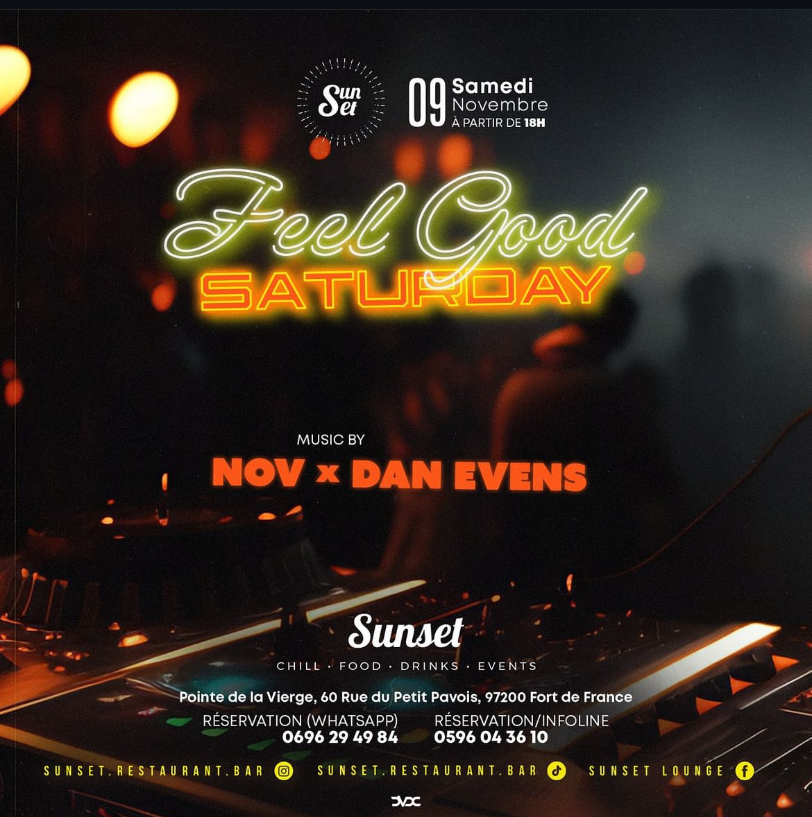 SUNSET RESTAURANT & LOUNGE Restaurant•Bar•Tapas•Cocktails RESERVATIONS/INFO +596 696 29 49 84 (WhatsApp) +596 696 54 05 30 (WhatsApp) +596 596 04 36 10 † Pointe de la Vierge, 60 Rue Du Petit Pavois, Fort-de-France 97200, Martinique FOLLOW US Instagram: @sunset.restaurant.bar TikTok: @sunset.restaurant.bar Facebook: Sunset Martinique YouTube: Sunset Martinique L'abus d'alcool est dangereux pour la santé à consommer avec modération. #sunsetrestaurant #sunsetlounge #events #nightlife #concerts #hal...
