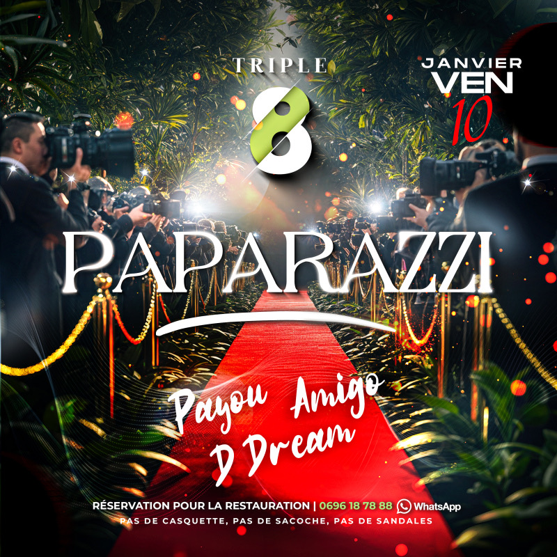 Surprise en maillot de bain par des paparazzi, une célébrité leur avait hurlé :_ _Floutez moi ou Floutez le camp_ _Dans quel camp serez vous?_ Le choix interverviendra ce *Vendredi 10 Janvier 2025* au Triple 8, on va vous *FLOUTER* _En long, en large et en travers_ *PAPARAZZI* Sortez vos tenues classe , talons vous risquez d’être flashés de tous les côtés !!!!! Au bout du tapis rouge: *DJ AMIGO* *DJ PAYOU* *DJ D DREAM* Que dire?!...A part ..... _Petite ou grand...