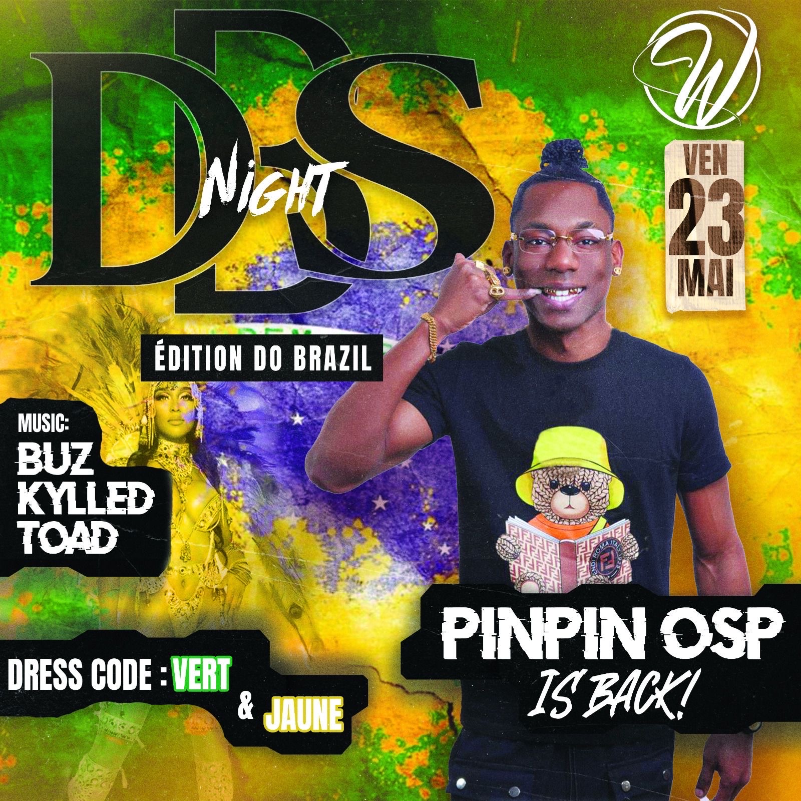 🔥Rendez-vous le vendredi 23 mai au W CLUB à Jarry pour la D.B.S NIGHT 🇧🇷ÉDITION DO BRAZIL🇧🇷avec un showcase du grand PINPIN OSP de retour en Guadeloupe spécialement pour nous🔥 DJ BUZ, DJ KYLLED, DJ TOAD seront aussi de la partie pour nous assurer une ambiance musicale exceptionnelle 🎶 💚Dress code vert et jaune💛 🤫Ce qui se passe a la D.B.S reste a la D.B.S🤫 📞INFO&RESA: 06 90 72 52 71📞 ‼️La direction se réserve le droit d’entrer même avec une prévente, pas de bijoux extravagant...