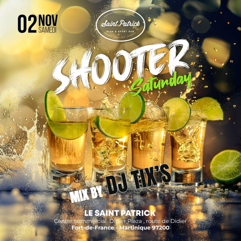 CE SAMEDI 02 NOVEMBRE - SHOOTER SATURDAY - _Carte exclusive à 2 EUROS SUR TOUTES LES PRÉPARATIONS DE SHOOTERS MAISON !_ Avec pour chauffer encore plus tout cela DJ TIX’S pour un set épicé !! Ouvert dès 19 h 00 .