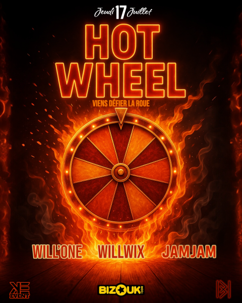 HOT WHEEL – LA SOIRÉE QUI TOURNE À FOND !Prépare-toi pour une nuit de feu où chaque bouteille peut faire basculer ton destin.À HOT WHEEL, chaque achat de bouteille te donne le droit de tourner la roue… et de décrocher des cadeaux exclusifs, des bouteilles gratuites, ou même des surprises inédites.Aux platines, les experts du turn up :WILL’ONE, WILLWIX et JAMJAM Lieu : BLACKWOODDate : Jeudi 17 JuilletHeure : 20h – 01hUne ambiance électrique, des vibes caribéennes, et une roue qui peut tout change...