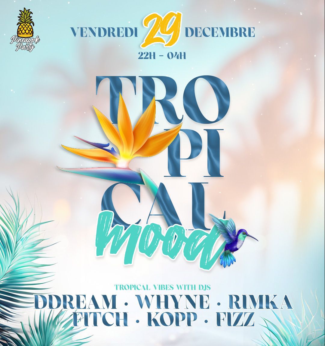 Câest le moment de clĂŽturer cette annĂ©e avec un concept qui vous est dĂ©jĂ familier. đ Le flyer parle de lui mĂȘme pas la peine dâen dire plus. Venez avec votre bonne humeur pour mettre une ambiance tropicale et finir lâannĂ©e en beautĂ©. âš Pour cette fin dâannĂ©e, vous pouvez dĂ©jĂ rĂ©server vos tables Infos et rĂ©servation : +33 7 88 042701 / +33 7 85 66 48 76