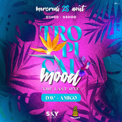 TROPICAL MOOD - THE LAST ONE Prépare toi pour ton rendez vous du mercredi le plus PRESSION de cette semaine ! Mercredi 28 Août DJ AMIGO et DAV' sauront mettre le feu au Sky Lieu : SKYCLUB MARTINIQUE Rue piétonne, ZAC de Rivière Roche, Fort-de-France 97200, Martinique PASS ET INVITATIONS -Invitations valables jusqu’à 01h30, le tarif sur place sera appliqué ensuite ! -Pass early, regular, last chance valable toute la nuit -Sur place : à voir directement sur les lieux si disponible ! TENUE C...