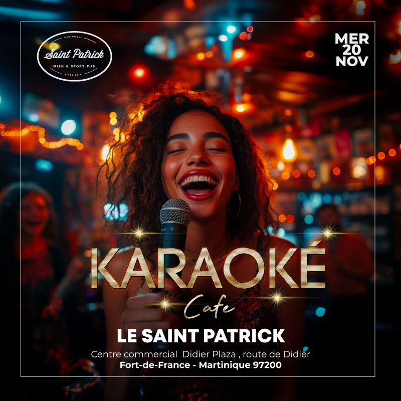 Rejoignez-nous pour une nuit de karaoké pleine de fun, de musique et de bonnes vibes ! Venez chanter vos hits préférés, seul ou avec vos amis. Le karaoké démarre à 19h00, arrivez tôt. Entrée libre Rejoignez-nous au Saint-Patrick, au centre commercial Didier Plaza à Fort-de-France. Pour plus d’infos, appelez le 0696863950
