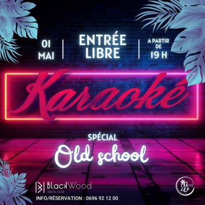 Ami.e(s).+Karaoké= Bonne humeur garantie. Rien d'un tel qu'un bon karaoké en mode Ols School pour électrifier la scÚne des sons de notre jeunesse Libérez l'artiste qui sommeille en vous. Vas y lùche ta voix Ce Mercredi 01 Mai à partir de 19h . Venez entre amis ,en famille, en amoureux, en convivialité. Entrée gratuite Possibilité de restauration sur place : Cocktails, Assiettes charcuteries/Fromages, Croc-monsieur... Le Blackwood 24 Zone canal cocotte Ducos Infos et résa: 0696 9212...
