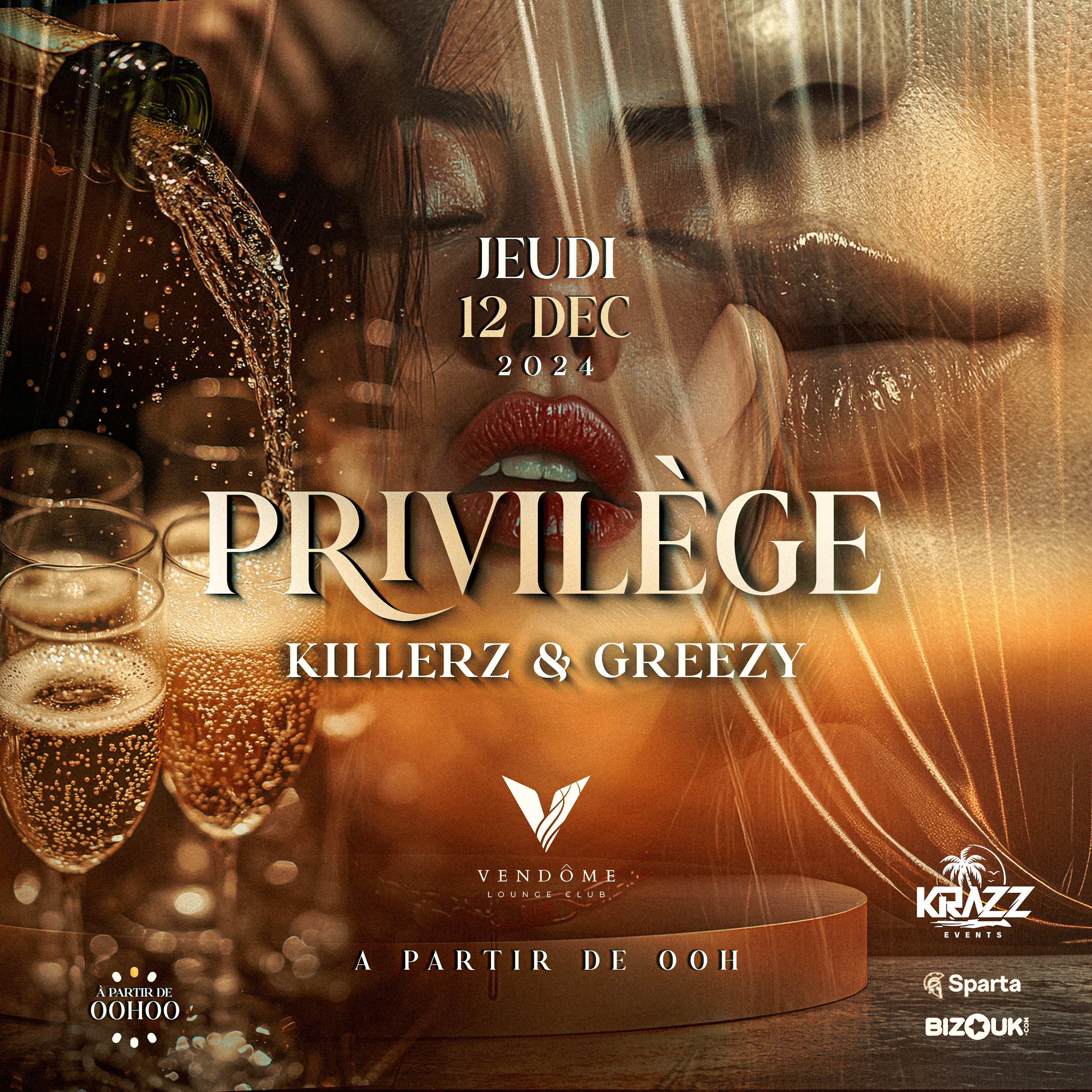 🌟 PRIVILÈGE 🌟 📅 Date : 12/12 🕒 Heure : À partir de 00h 📍 Lieu : Vendôme ✨ Mes privilégiés, préparez-vous à une soirée exclusive à ne surtout pas manquer ! ✨ Aux platines, deux maîtres du son pour vous faire vibrer : 🎧 DJ Killerz 🎧 DJ Greezy L’ambiance s’annonce mémorable avec des sets qui vous feront danser jusqu’au bout de la nuit ! 👔 Dress code : Chic & décontracté 🔞 Entrée réservée aux majeurs Une nuit d’exception vous attend. Soyez prêts pour le show au Vendôme !