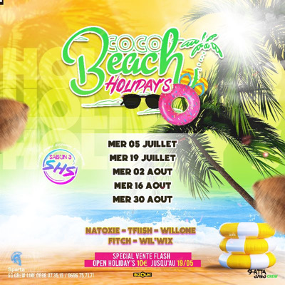 ALERTE TES SHATTA' HOLIDAYS DÉBARQUE À MADA Réserves Déjà T'ES MERCREDIS de JUILLET/ AOÛT car le SHATTA GANG CREW t'a concocté un Programme de malade digne des meilleurs Festivals du Monde Entier TES COCO BEACH HOLIDAYS Attachez vos Bouée et vos plus beaux Paréos.. Monte ta team et viens t'éclater tout au long des Vacances avec les Djs les Plus SHATTA de l'île... T-fiish Natoxie Will One Fitch & Wil Wix Pour une Ambiance SHS Saison III Garantie Inoubliable Près de 3000 Personnes Att...