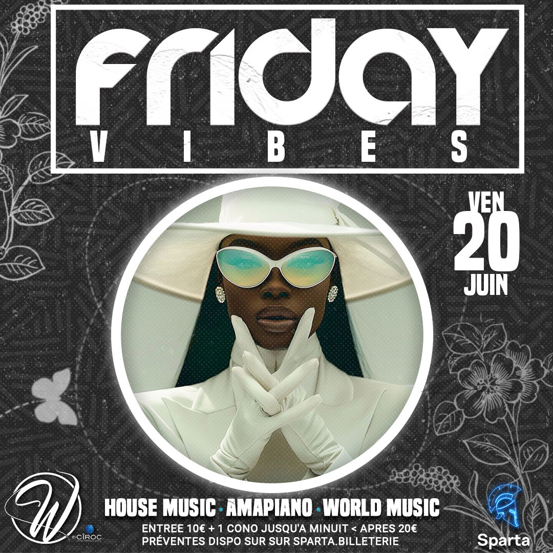 La Friday vibes et de retour ce vendredi 20 juin au W. Club, une Soirées, house music Amapiano and world music , une ambiance unique et festive, donc plus aucune excuse et rendez vous sur Sparta pour récupérer vos préventes à petit prix , info Line 0690503559