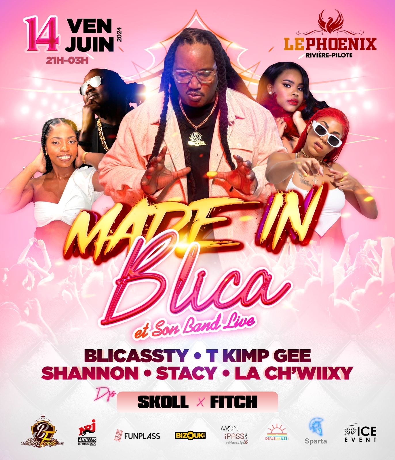 MADE IN BLICA Nouveau concept 100% LIVE débarque en Martinique avec Blicassty et Ice Event au Phœnix (Rivière-Pilote) Préparez vous à vivre une expérience inoubliable accompagné de nos DJs et Artistes surprises En attendant nous vous offrons une petit cadeau pour les plus rapides via nos billetteries À très vite pour plus d’infos !