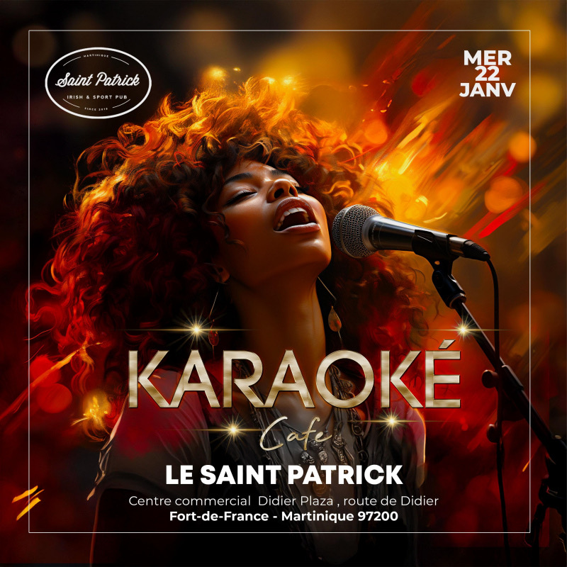 Rejoignez-nous pour une nuit de karaoké pleine de fun, de musique et de bonnes vibes ! Venez chanter vos hits préférés, seul ou avec vos amis. Le karaoké démarre à 19h00, arrivez tôt. Entrée libre Rejoignez-nous au Saint-Patrick, au centre commercial Didier Plaza à Fort-de-France. Pour plus d’infos, appelez le 0696863950