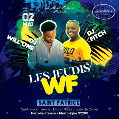 Ne ratez pas nos jeudis WF avec Willone et Fitch au Saint-Patrick! De 19h à minuit, plongez dans une ambiance électrisante avec vos DJs préférés! ENTRÉE GRATUITE AVANT 21h30 récupère Ou sur L'application SPARTA Ouvert dès 19 h 00 . Cc Didier Plaza ; Route De Didier . FdF - +596696194006